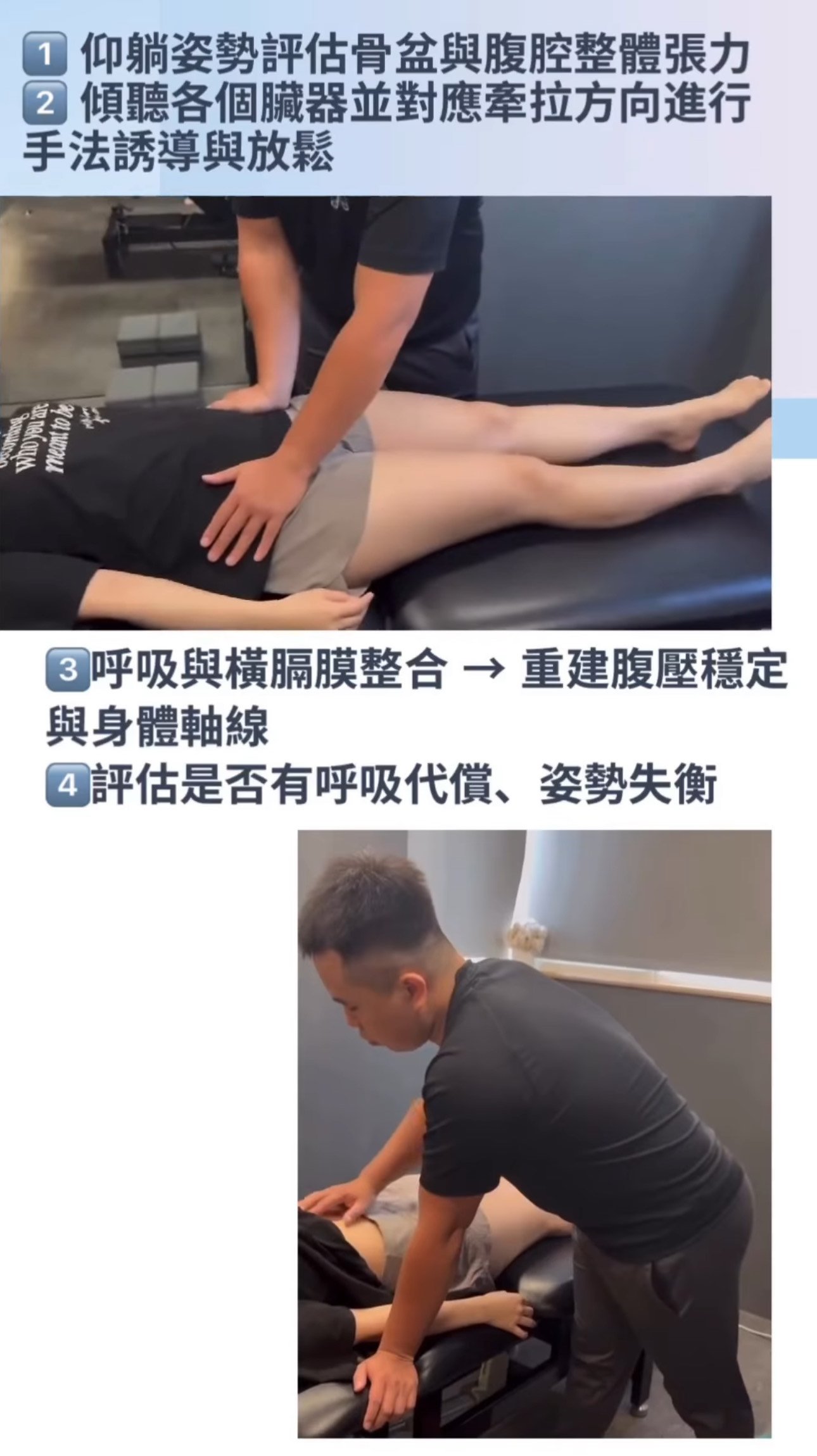 2️⃣ 傾聽各個臟器並對應牽拉方向進行手法誘導與放鬆